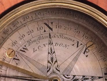 This is a beautiful 3 3/4" brass compass mounted in a pearwood case. The compass and case are in excellent condition.