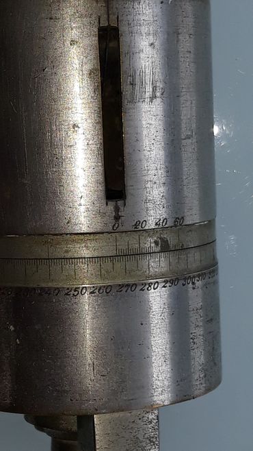There is a very small graduated prism that shows units " Pentes en Centiemes" - " Slopes in Hundredths".