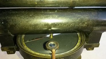 The numbers on the compass dial appear to also have been done by hand as they also show inconsistencies between the same numbers. Possibly a pantograph or similar was used.