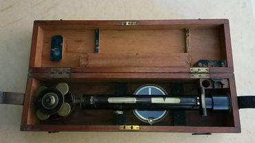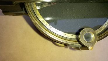 There are two indicators attached to the long bubble at the top which I would have been used in the leveling of the instrument by marking the extent of the travel for the bubble while rotating the telescope and releveling over the foot screws.
