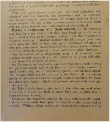 Several of my 100 plus years old instruments still have the original cross hair spider webs intact.